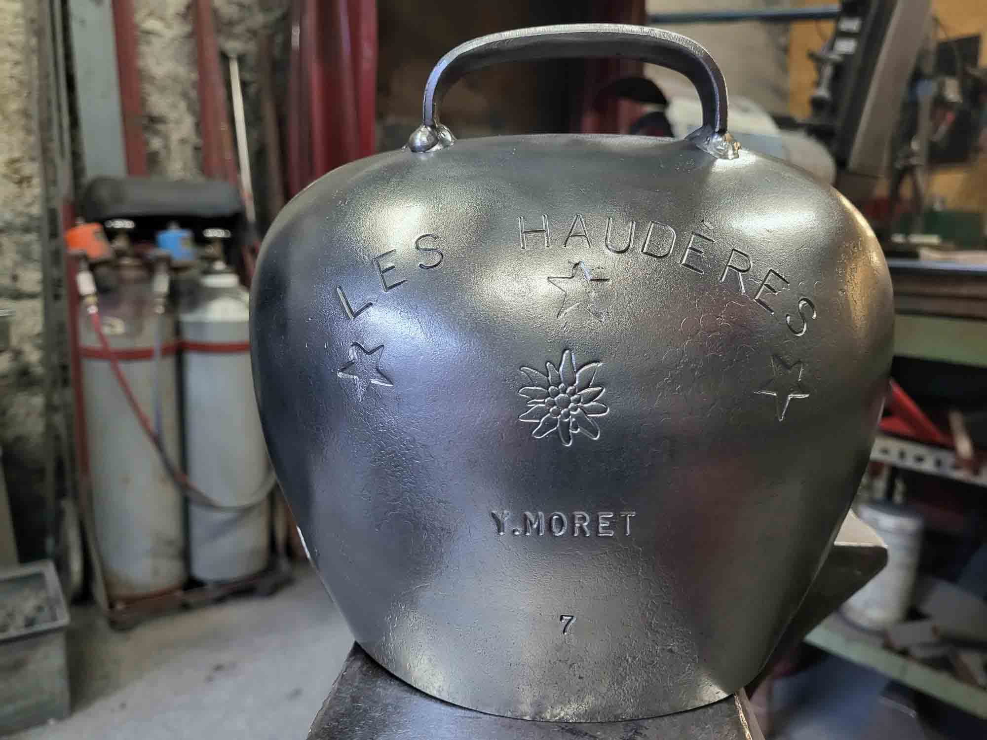 Chaque sonnette est forgée, martelée et ajustée à la main. Le secret réside dans la justesse du timbre, obtenu par un travail aussi rigoureux qu’instinctif. De Chandonne à Vissoie, l’artisan poursuit une tradition valaisanne unique, tout en y apportant sa touche moderne.